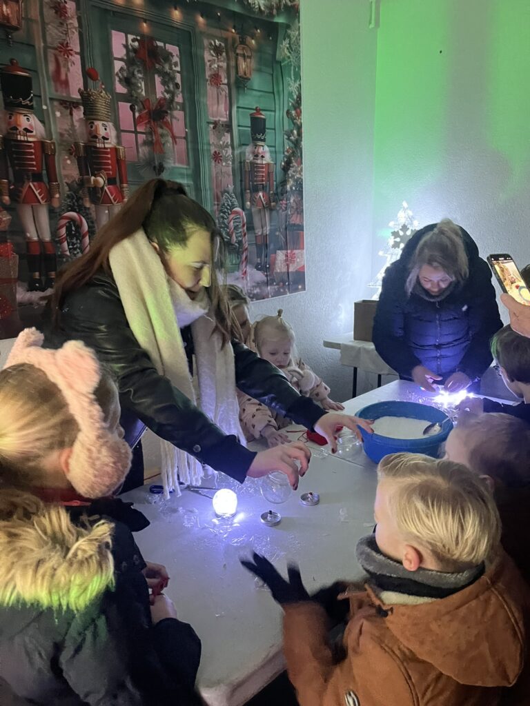 In het parochiehuis wachtte een bijzondere verrassing: het huis van de Kerstman. Hier konden kinderen op de foto met de Kerstman en de kerstelf, wat velen spannend maar uiteindelijk ook erg leuk vonden. Bommel de Beer zorgde ook voor een extra creativiteit met een sneeuwbol-knutselactiviteit, die zo populair was dat de sneeuwbollen al snel op waren. Veel kinderen gingen trots naar huis met hun eigen lichtgevende sneeuwbol. Daarnaast konden ze lootjes kopen, waarmee leuke prijzen te winnen waren.